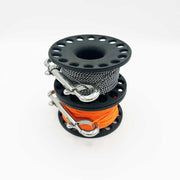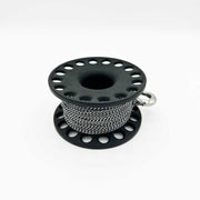 Holds 60 metres of 1.5mm Black and White Dyneema line with a breaking strength of 90 kilos or a neon orange polyester line.